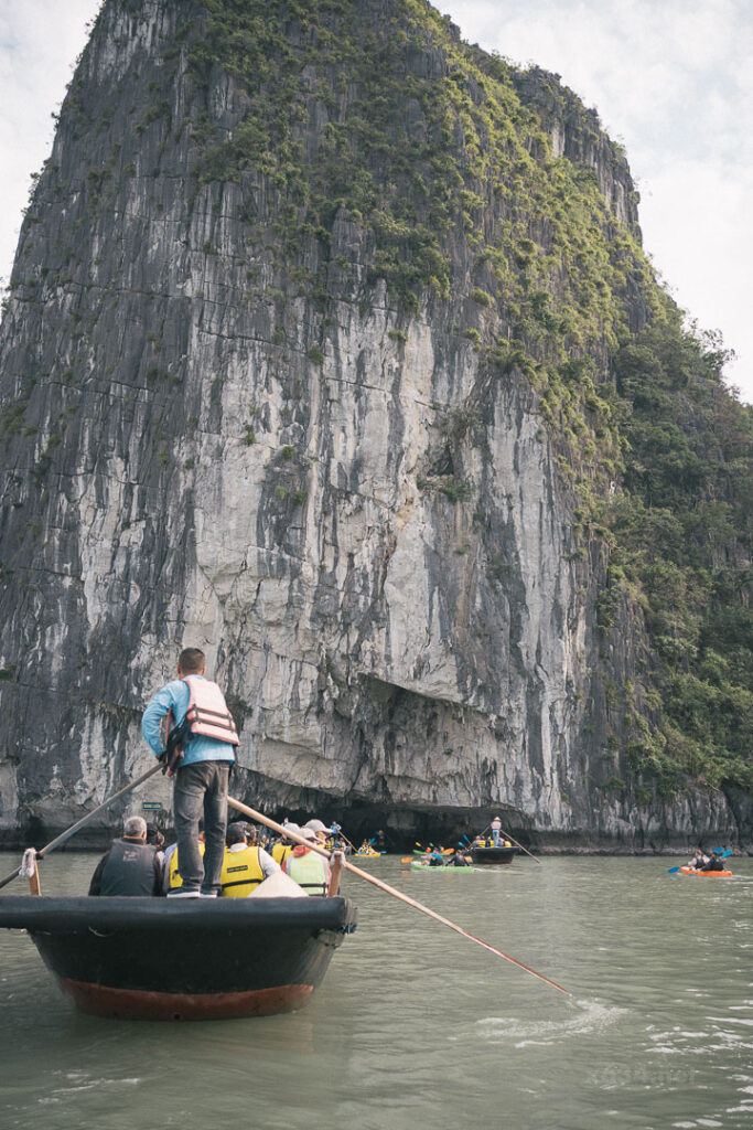 理屈っぽくいえば、ここはカルスト地形だ。5億年前は海底で、そこから2000万年でなんやかんやあって岩になった。ちなみに、この湾に浮かぶ奇岩のひとつはベトナムのお札にもなっている。国にとってはそれほどの場所なのだ。ツアーの途中、鍾乳洞を歩く。5億年と言われてもピンと来ない。あと人が多い。